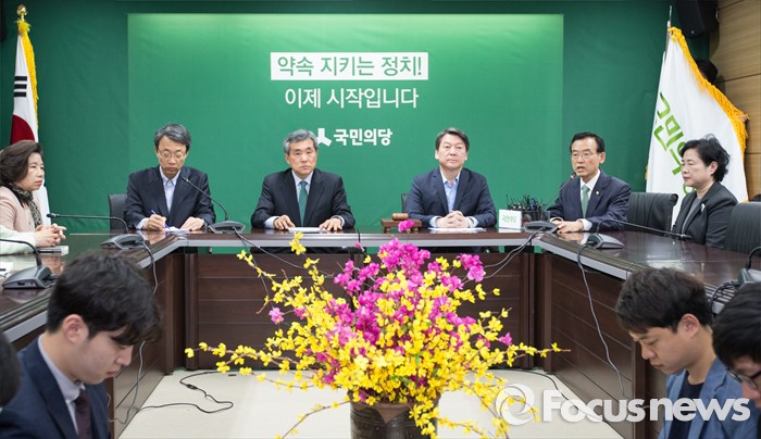 (서울=포커스뉴스) 안철수 국민의당 상임공동 대표를 비롯한 지도부가 14일 오전 서울 마포구 국민의당 당사에서 선거대책회의를 하고 있다. 오른쪽 두번째부터 임내현 선거대책위원회 상황본부장, 안 대표, 이상돈 공동선대위원장, 김성식 의원