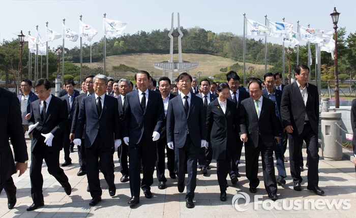 (광주=포커스뉴스) 천정배 국민의당 공동대표를 비롯한 광주 지역 당선자들이14일 오후 광주 북구 국립5.18민주묘지에서 참배를 마치고 이동하고 있다.