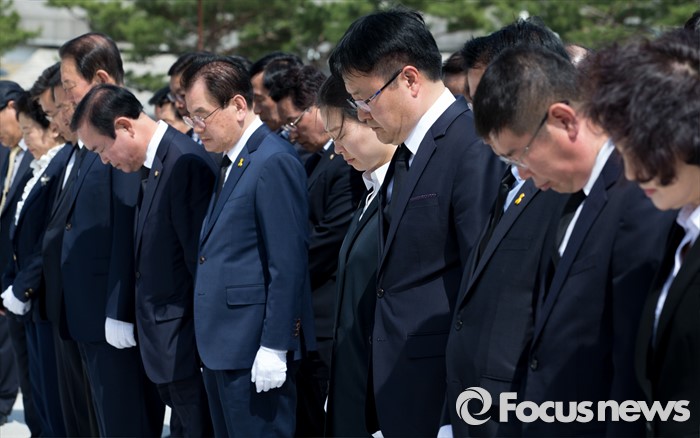 (광주=포커스뉴스) 14일 오후 광주 북구 국립5.18민주묘지에서 천정배 국민의당 공동대표를 비롯한 광주 지역 당선자들이 참배를 하고 있다.