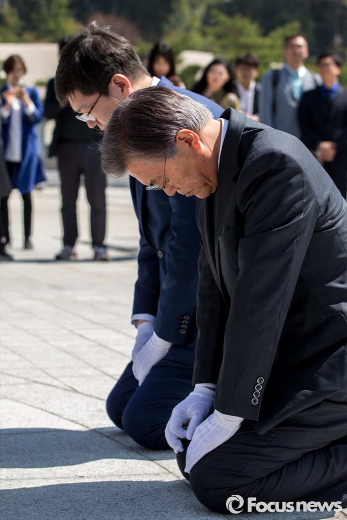 | △ 무릎 꿇은 문재인 더민주 전 대표 |
