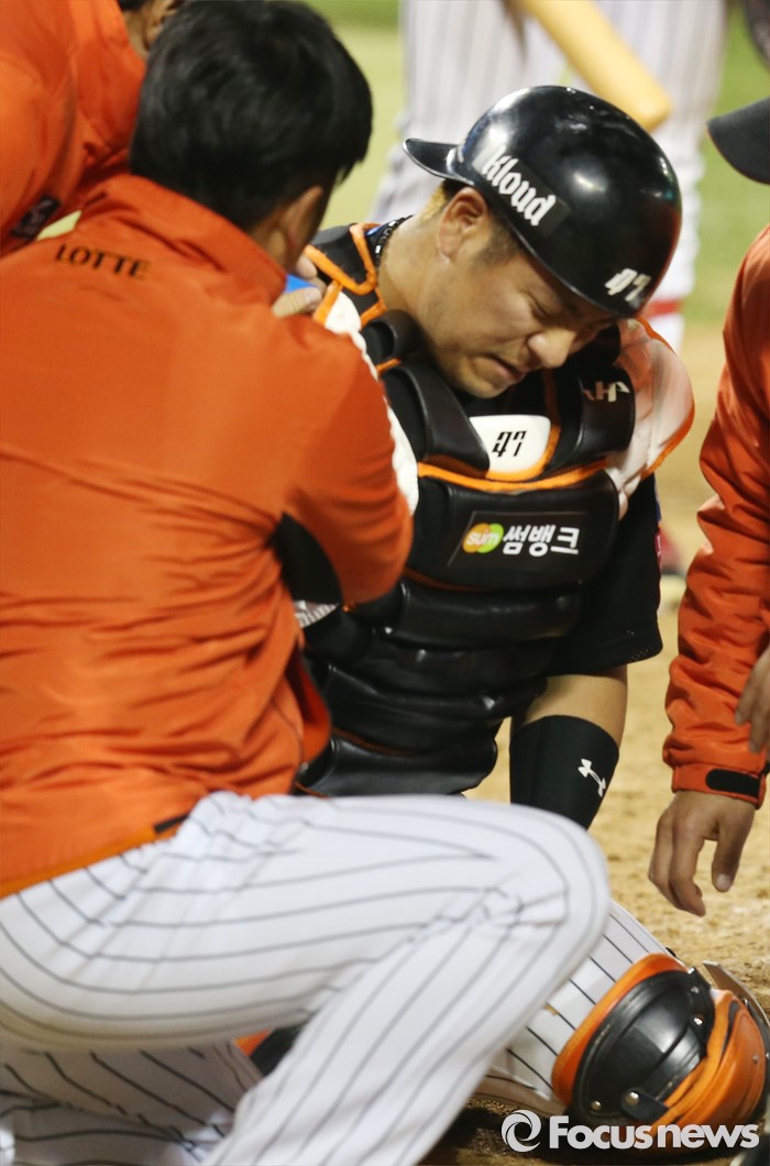 | △ 치료받는 강민호 |