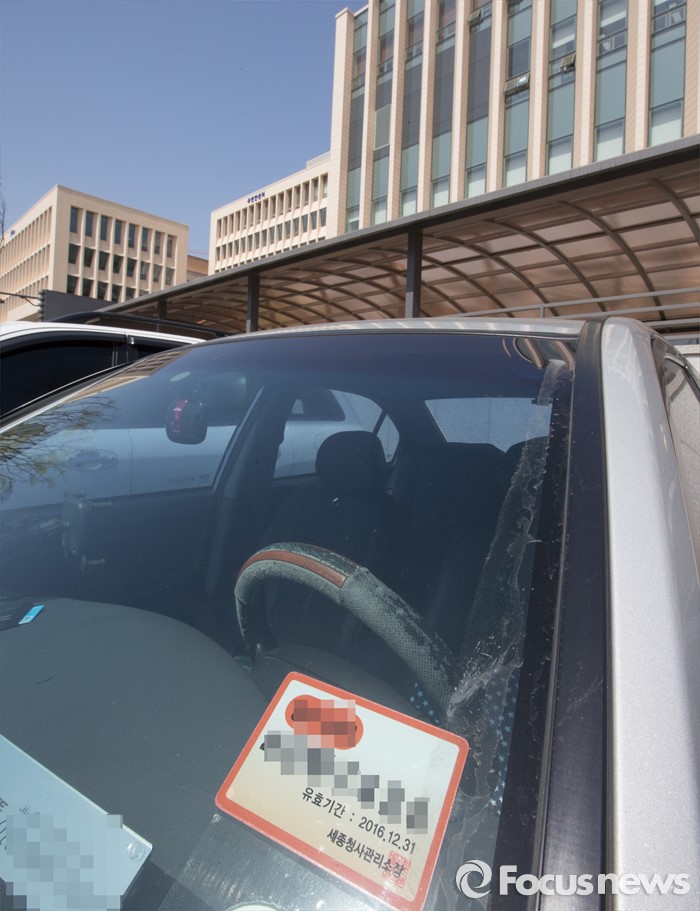 (세종=포커스뉴스) 정부세종청사관리사무소가 지하주차장 보안강화 차원에서 민간인 출입 제한조치를 14일 오후부터 시행한 가운데 15일 오전 정부세종청사 지하주차장에 출입이 제한된 차량이 지상주차장에 주차돼 있다.