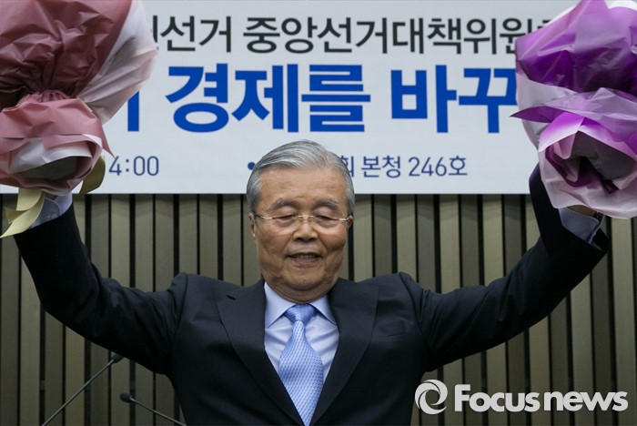 (서울=포커스뉴스) 김종인 더불어민주당 비대위 대표 겸 선대위원장이 15일 오후 서울 여의도 국회에서 열린 20대 총선 중앙선대위 해단식에 참석해 당직자로부터 받은 꽃다발을 들고 포즈를 취하고 있다.