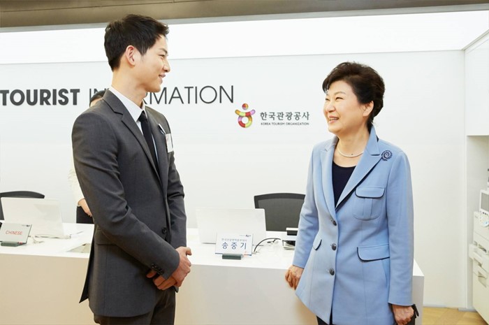 송중기는 지난 11일 오전 서울 중구 한국관광공사 서울센터에서 열린 K-스타일 허브(K-Style Hub) 한식문화관 개소식에서 박근혜 대통령과 만났다. 당시 송중기는 한국관광공사 홍보대사로 참석했다. 송중기는 박근혜 대통령과 만남에 "긴장했었다"고 말했다.