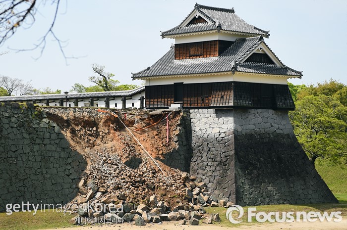 14일에 이어 16일 새벽 2011년 3월 동일본대지진 이후 일본에서 발생한 최대 지진이 같은 곳에서 연달아 발생하면서 규슈 지역민의 불안이 커지고 있다.일본 규슈 구마모토 현에서 14일 일어난 지진으로 구마모토 성 일부가 무너졌다. 구마모토 성은 나고야 성, 오사카 성과 함께 일본 3대 성 가운데 하나다. (Photo by Masterpress/Getty Images) 2016.04.15 ⓒ게티이미지/이매진스 14일 밤 9시27분 구마모토 현 마시키 정에서 일본 구조대가 구조활동을 벌이고 있다. 구조대는 지진 발생 6시간 만에 건물 잔해 속에서 8개월 아기를 구하기도 했다. (Photo by Masterpress/Getty Images) 2016.04.15 ⓒ게티이미지/이매진스