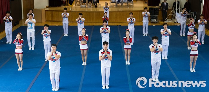 (서울=포커스뉴스) 17일 오후 서울 서대문구 동명여자중학교 체육관에서 열린 '2016 치어리딩 국가대표 선수단 출정식'에 참석한 선수들이 치어리딩 연기를 선보이고 있다.
