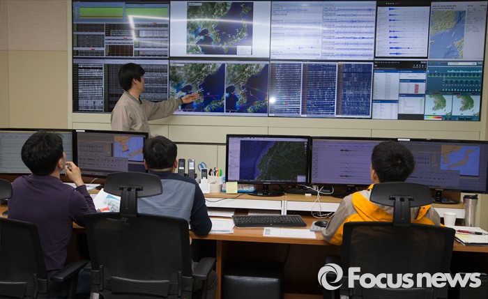 (대전=포커스뉴스) 오스카 에레라 주한 에콰도르 대사가 18일 오전 대구 유성구 한국지질자원연구원 내 지진연구센터 상황실을 방문한 가운데 관계자들이 국내 지진상황을 모니터하고 있다.