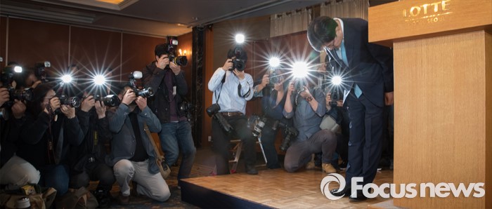 가습기 살균제 사태와 관련해 그간 큰 고통과 슬픔을 겪어 오신 피해자 여러분과 그 가족들에게 많이 늦었지만, 다시 한 번 진심으로 머리 숙여 사과의 말씀을 드립니다.(서울=포커스뉴스) 김종인 롯데마트 대표가 18일 오전 서울 중구 롯데호텔앤리조크 서울에서 열린 가습기 살균제 사망사건 관련 기자회견에서 고개 숙여 사과를 하고 있다. 2016.04.18 조종원 기자