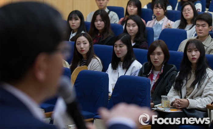(대전=포커스뉴스) 이기권 고용노동부장관이 대전 유성구 충남대학교를 방문, 대학생들과 함께 찾아가는 정책설명회 및 토크콘서트를 하고 있다.