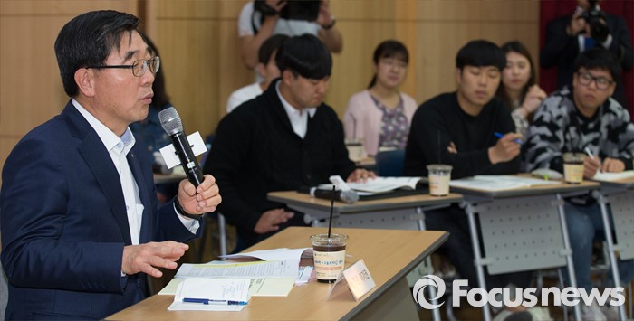 (대전=포커스뉴스) 이기권 고용노동부장관이 대전 유성구 충남대학교를 방문, 대학생들과 함께 찾아가는 정책설명회 및 토크콘서트를 하고 있다.