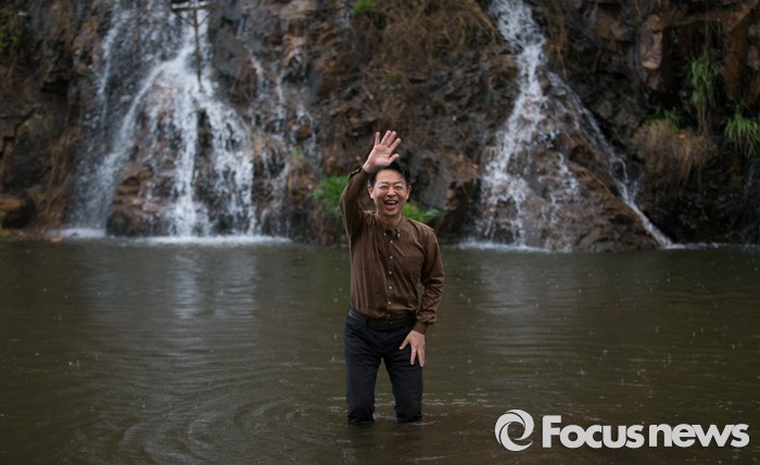 (서울=포커스뉴스) 제20대 국회의원 선거에서 당선된 김영호 더불어민주당 서대문을 당선자가 18일 오후 서울 서대문구 홍제천 폭포마당에 입수 하고 있다. 김 당선자는 서대문을 지역 투표율 60% 달성 시 홍제천 입수, 아내는 픽미댄스를 추겠다고 약속 하였다.