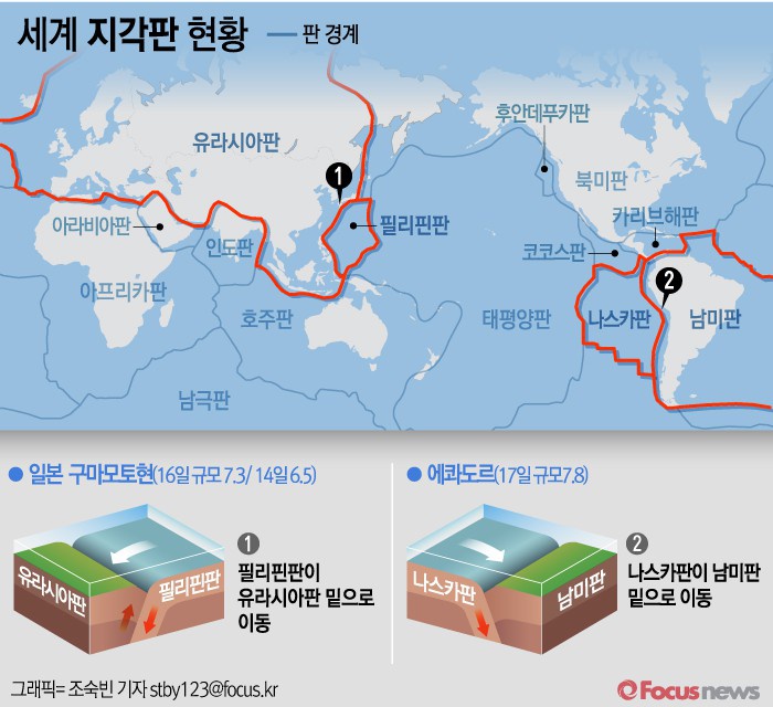 (서울=포커스뉴스) 최근 환태평양 지진대에서 강도 높은 지진이 연이어 일어나면서 세계 지각판의 동태가 심상치 않다는 우려의 목소리가 나오고 있다.
