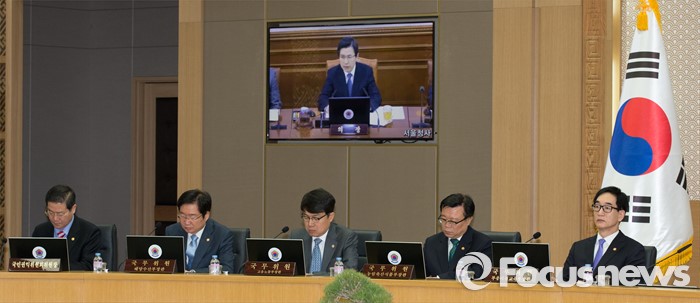 (세종=포커스뉴스) 19일 오전 세종시 정부세종청사 국무회의장에서 서울-세종 영상회의로 열린 국무회의에 참석한 국무위원들이 황교안 총리의 모두발언을 경청하고 있다.