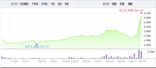 우리들휴브레인 역시 전날 29.95% 상승폭에 이어 상승 흐름을 이어가고 있다. 고(故) 노무현 전 대통령의 주치의가 최대주주로 있는 우리들휴브레인은 전일 대비 6.30%(250원) 오른 4220원에 거래 중이다.뉴보텍 주가흐름<사진출처=네이버 캡쳐>
