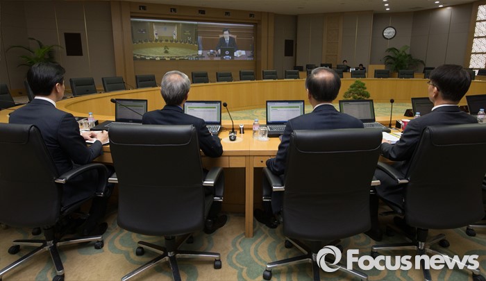 (세종=포커스뉴스) 19일 오전 세종시 정부세종청사 국무회의장에서 서울-세종 영상회의로 열린 국무회의에 참석한 국무위원들이 황교안 총리의 모두발언을 경청하고 있다.