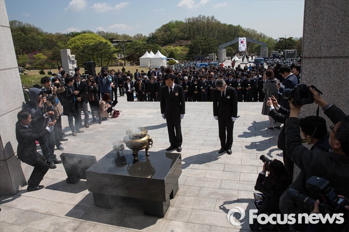 (서울=포커스뉴스) 19일 오전 손학규 전 더불어민주당 상임고문이 서울 강북구 국립 4.19민주묘지를 찾아 참배하고 있다.