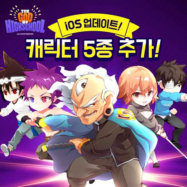 (서울=포커스뉴스) 와이디온라인(대표 신상철)은 iOS 버전 '갓 오브 하이스쿨'에 신규 캐릭터 5종을 추가한다고 19일 밝혔다.