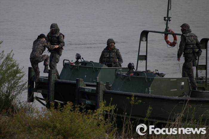 도하훈련하는 장병들