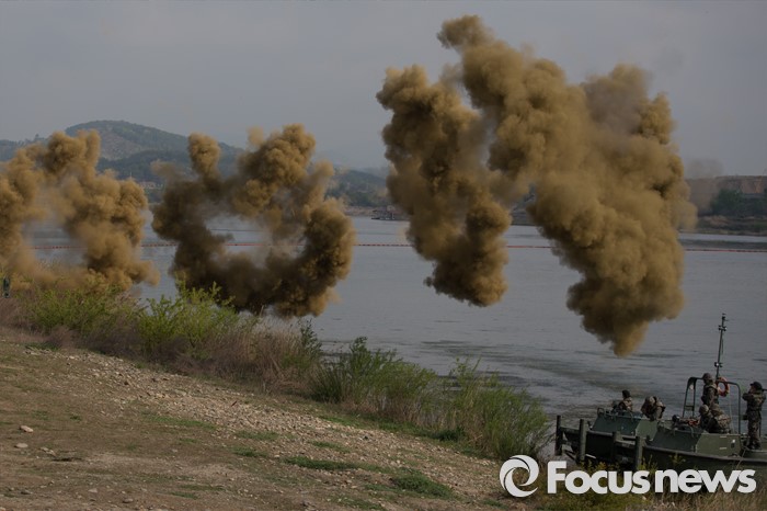 △ 잠수도하훈련에 쏟아지는 연막탄