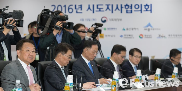 (세종=포커스뉴스) 유일호 경제부총리 겸 기획재정부장관이 19일 오후 세종시 정부세종청사 기획재정부 대회의실에서 열린 2016년 시도지사협의회에 참석해 모두발언을 하고 있다.