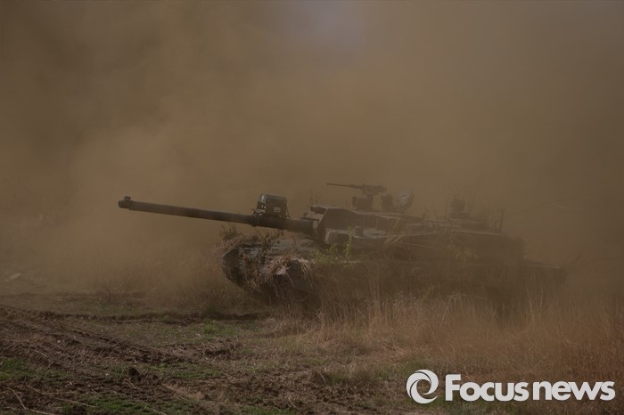 △ 연막탄 속을 기동하는 K-2 흑표전차