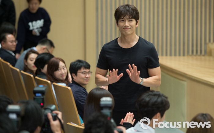 (서울=포커스뉴스) 19일 오후 서울 SBS 목동사옥에서 열린 SBS 드라마 스페셜 '딴따라' 제작발표회에 참석한 배우 지성이 취재진에게 인사를 하고 있다.
