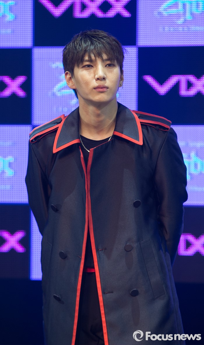 홀서울=포커스뉴스) 19일 오후 서울 마포구 롯데카드 아트센터에서 열린 아이돌그룹 VIXX의 싱글앨범 'Zelos' 발표 쇼케이스에 참여한 멤버 레오가 포토타임을 갖고 있다.