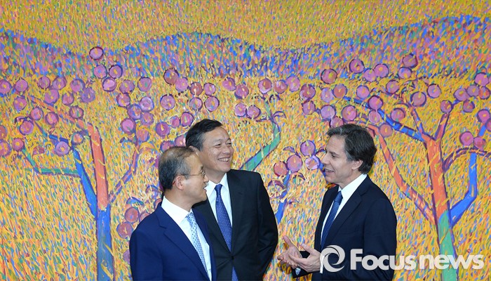 (서울=포커스뉴스) 한미일 외교차관이 19일 오후 서울 종로구 외교부에서 윤병세 외교부 장관과 접견에 앞서 대화를 나누고 있다. 왼쪽부터 임성남 외교부 제1차관, 사이키 아키타카 일본 외무성 사무차관, 토니 블링컨 미국 국무부 부장관.