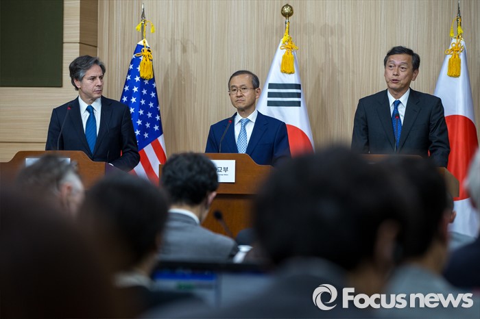 (서울=포커스뉴스) 사이키 아키타카 일본 외무성 사무차관이 19일 오후 서울 종로구 외교부에서 '제3차 한미일 외교차관 협의회' 결과 발표를 하고 있다.