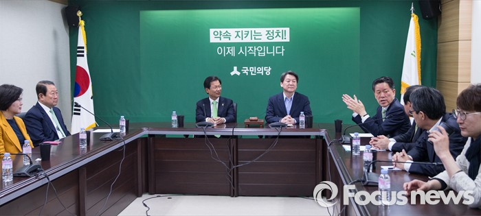(서울=포커스뉴스) 안철수, 천정배 국민의당 상임공동대표를 비롯한 최고위원들이 20일 오전 서울 마포 당사에서 열린 최고위원회의에 참석하고 있다. 왼쪽 두번째부터 박주선 최고위원, 천 대표, 안 대표, 주승용 원내대표