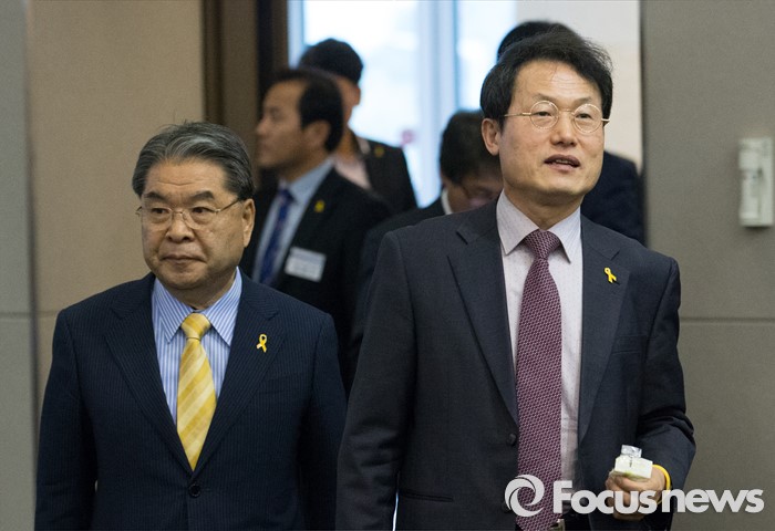 (인천=포커스뉴스) 조희연(오른쪽) 서울시교육감과 이재정 경기도교육감이 20일 오후 인천 중구 하버파크호텔에서 열린 전국 시도교육감협의회 간담회에 참석하고 있다.