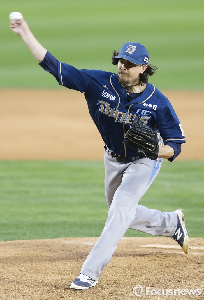 (서울=포커스뉴스) 20일 서울 잠실구장에서 열린 2016 프로야구 NC-LG 경기에서 1회말 NC 선발투수 스튜어트가 투구하고 있다.