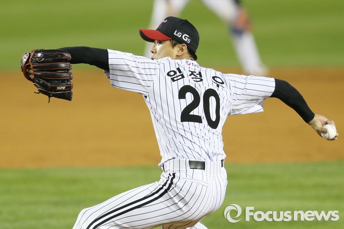 (서울=포커스뉴스) 20일 서울 잠실구장에서 열린 2016 프로야구 NC-LG 경기에서 LG 투수 임정우가 9회에 투구하고 있다.