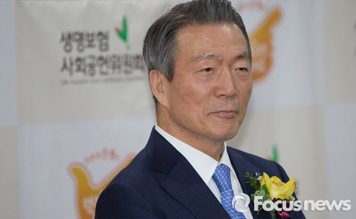 (서울=포커스뉴스) 21일 오전 서울 종로구 센터포인트빌딩에서 열린 '생명보험사회공헌위원회 '100세 시대 행복수명 캠페인' 홍보대사 위촉식에 참석한 이수창 생명보험사회공헌위원회 공동위원장이 미소를 짓고 있다.