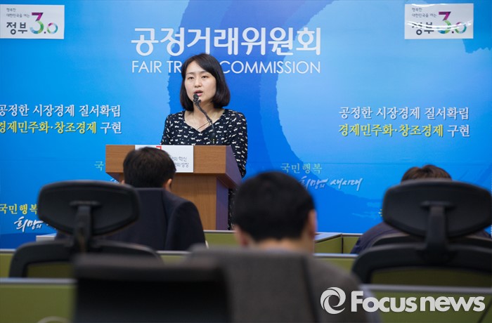 (세종=포커스뉴스) 민혜영 공정거래위원회 약관심사과장이 21일 오전 세종시 정부세종청사 공정위 기자실에서 브리핑을 갖고 애플코리아와 애플 공인 서비스 제공업체 간 애플 제품 수리 위·수탁계약서상 20개 불공정 약관조항을 시정했다고 밝히고 있다.