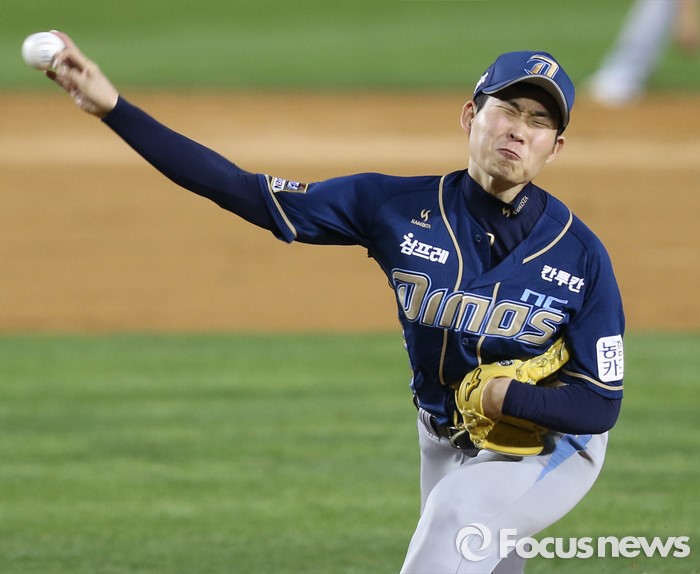 (서울=포커스뉴스) 21일 서울 잠실구장에서 열린 2016 프로야구 NC-LG 경기에서 3회말 NC 선발투수 이재학이 투구하고 있다.