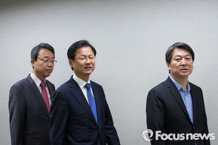 (서울=포커스뉴스) 안철수(오른쪽), 천정배 국민의당 상임공동대표와 김성식 최고위원(왼쪽)이 22일 오전 서울 마포 당사에서 열린 최고위원회의에 참석하고 있다.