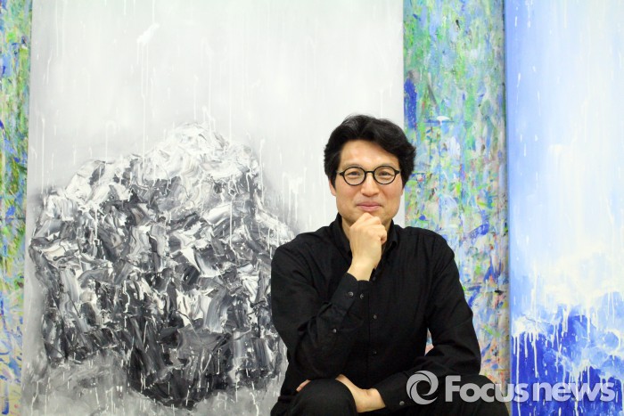 "자연만큼 큰 울림을 주는 게 없습니다. 영혼을 울리는 소리, 영혼의 울림 같은걸 찾아 담아내고 싶습니다. 영혼의 흐름을요. 초기에는 대상에 충실한 색을 썼습니다. 사유적인 마음의 깊이를 찾다보니 이제는 좀 단순화됐습니다. 담백화되고 있다고 할까요. 청색이나 흑색이 흰색과 어우러지면서 담백하게 나옵니다."