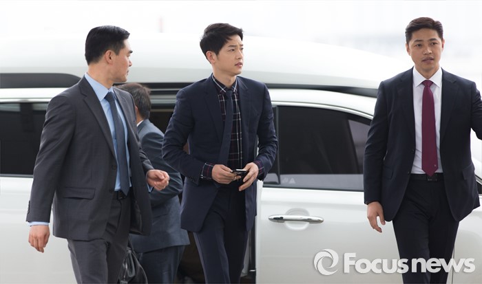 인천공항 통해 출국하는 송중기