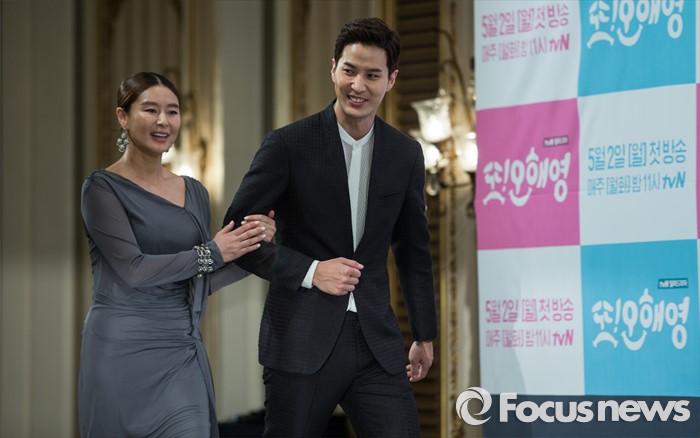 (서울=포커스뉴스) 22일 오후 서울 강남구 임피리얼 팰리스호텔에서 열린 tvN 월화드라마 '또! 오해영' 제작발표회에 참석한 배우 예지원(왼쪽)과 김지석이 포토타임을 갖고 있다.