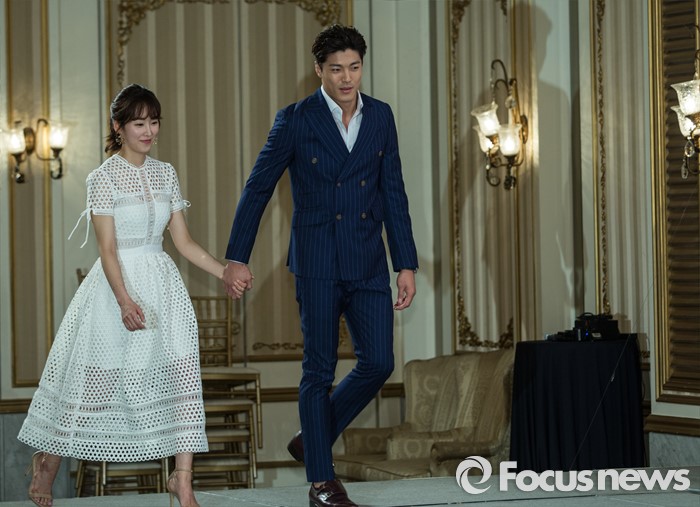 (서울=포커스뉴스) 22일 오후 서울 강남구 임피리얼 팰리스호텔에서 열린 tvN 월화드라마 '또! 오해영' 제작발표회에 참석한 배우 서현진(왼쪽)과 이재윤이 포토타임을 위해 이동하고 있다.