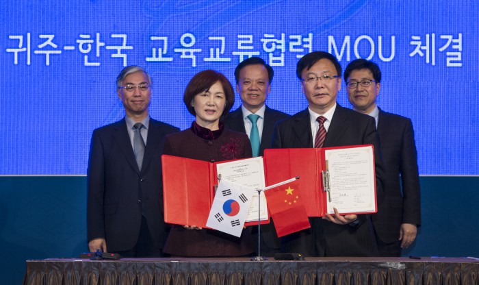 이 자리에는 지난 19일부터 4박 5일 일정으로 방한 중인 천민얼 중국 귀주성 서기와 왕봉우 교육청장 등 귀주성 대표단과 추궈홍 주한 중국대사가 참석했다.