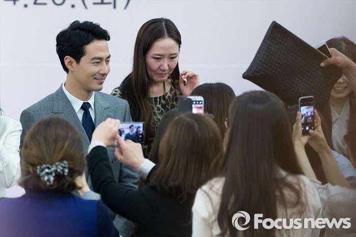 (서울=포커스뉴스) 26일 오후 서울 종로구 서울지방국세청에서 2016 국세청 홍보대사로 위촉된 배우 조인성이 직원들과 기념촬영을 하고 있다.