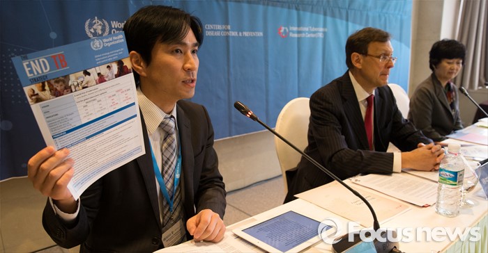(서울=포커스뉴스) 27일 오전 서울 중구 프레지던트호텔에서 열린 'WHO 국제회의 기자 간담회'에서 노부유키 니시키오리 서태평양지역본부 결핵관리 담당관이 인사말을 하고 있다.