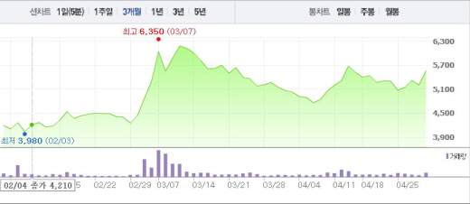 한편, 거래소는 이란 해양 플랜트 공사 수주 보도와 관련, 대우조선해양에 조회공시를 요구했다. 기간은 이날 오후 6시까지다.주가흐름<사진출처=네이버 캡쳐>
