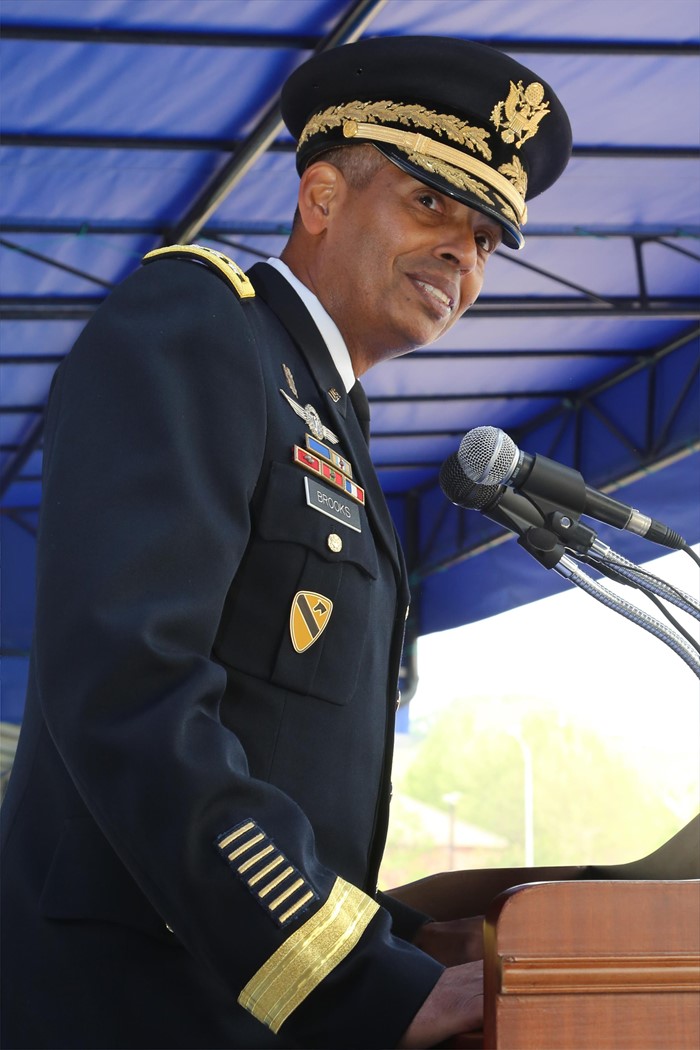 (서울=포커스뉴스) 빈센트 브룩스 신임 한·미연합사령관 겸 주한미군사령관이 30일 서울 용산기지 나이트필드에서 열린 이취임식에서 취임사를 하고 있다. <사진제공=주한미군 홈페이지>