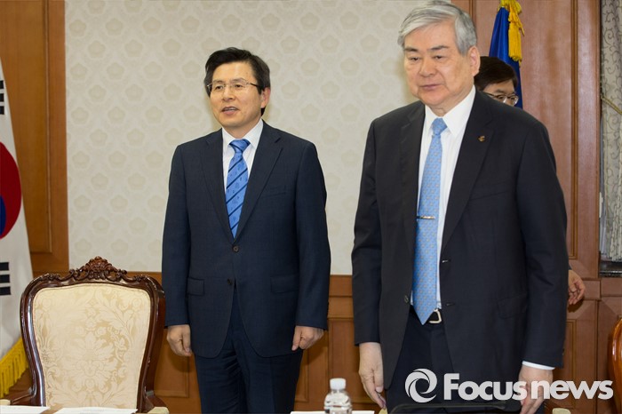 (서울=포커스뉴스) 황교안(왼쪽) 국무총리가 29일 오전 서울 종로구 정부서울청사에서 열린 평창동계올림픽지원위원회에 조양호 평창동계올림픽 조직위원장과 함께 참석하고 있다.