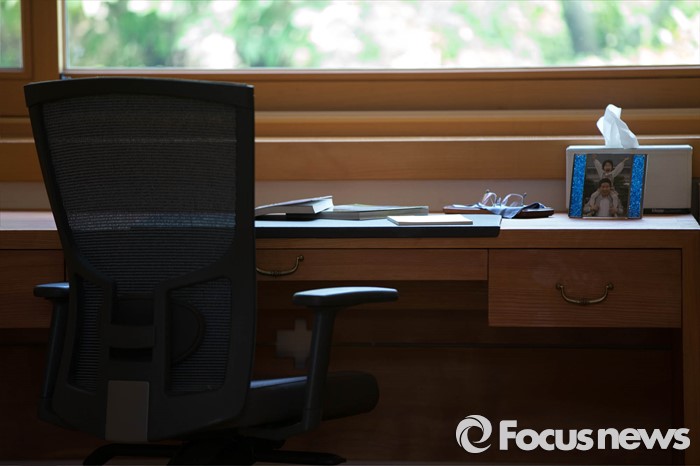 (김해=포커스뉴스) 고 노무현 전 대통령 서거 7주기를 앞두고 1일 오전 노 전 대통령의 사저가 공개되고 있다. 사진은 사저 안채 노 전 대통령의 책상.