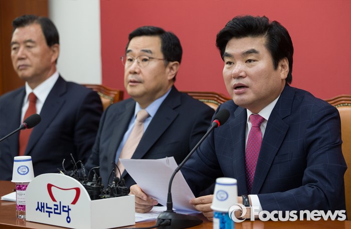 (서울=포커스뉴스) 원유철(오른쪽 첫번째) 새누리당 대표최고위원 권한대행이 2일 오후 서울 여의도 국회에서 열린 원내대책회의에 참석해, 모두발언하고 있다.