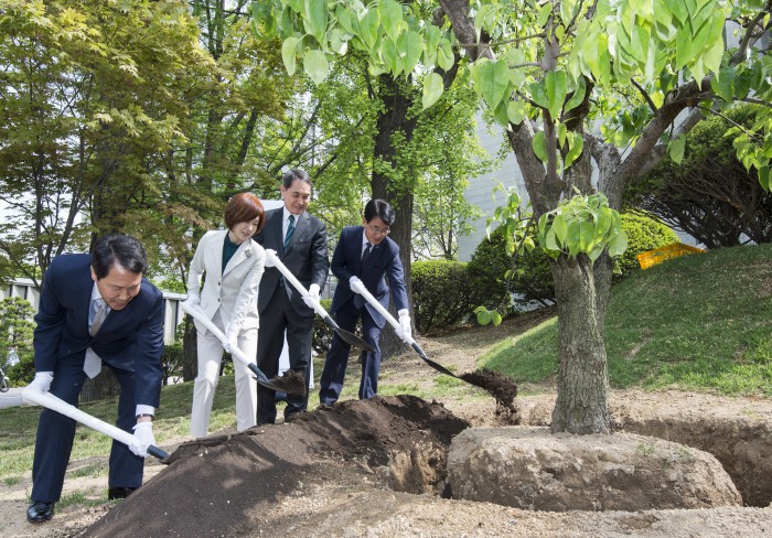 (서울=포커스뉴스) 이화여자대학교가 28일 오전 이화여대 입학관 앞에서 창립 130주년을 기념하기 위한 배나무 기념식수 행사를 열었다.